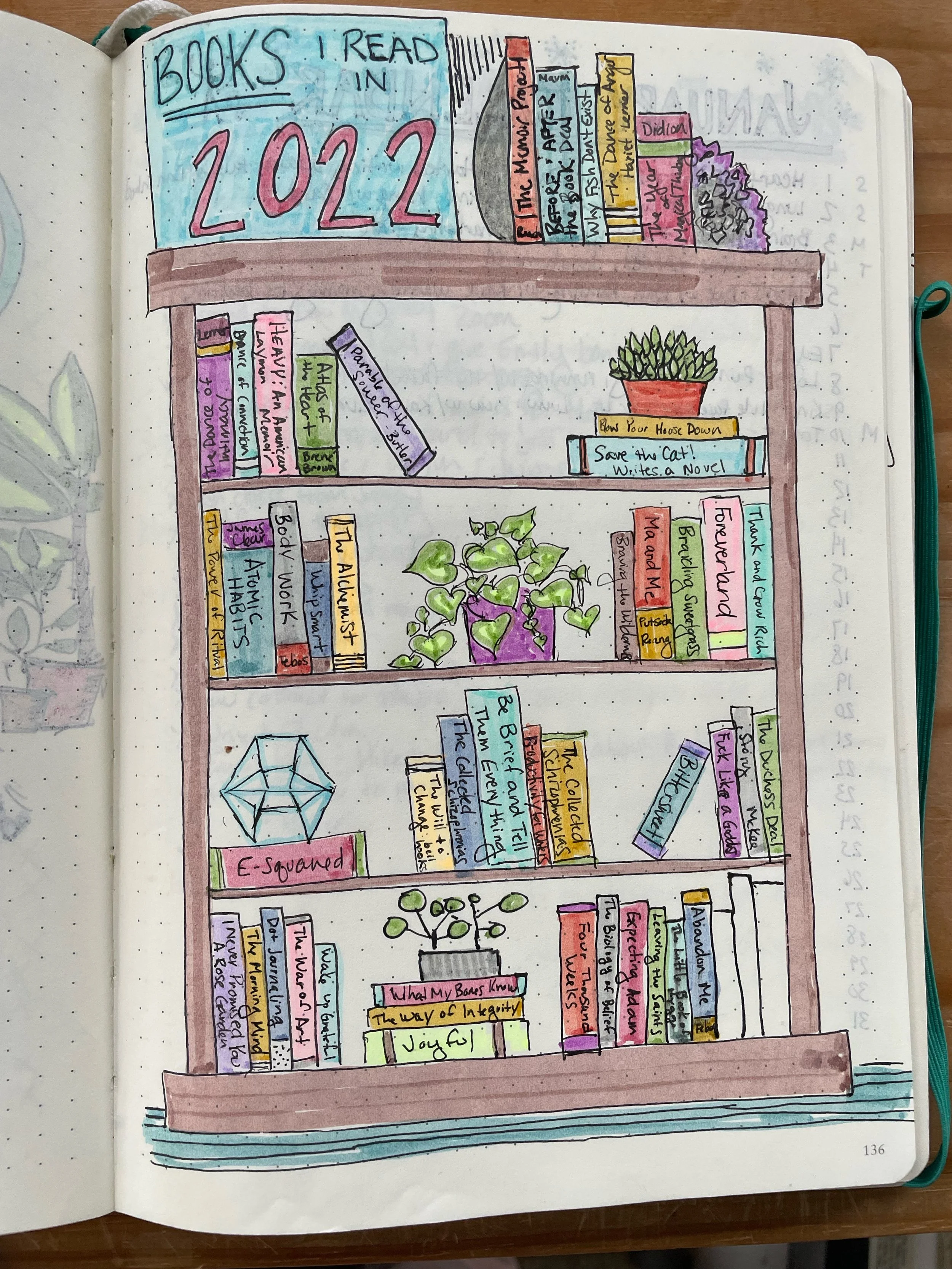 I’ve read or listened to 44 books so far in 2022! Here’s a little drawing I made where I’ve been keeping track of this year’s reading list. (A few blank ones at the end, in case I finish any more.)